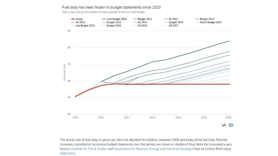 Analysis: Fuel-duty freeze has increased UK CO2 emissions by up to 5% - Carbon Brief, March 2020