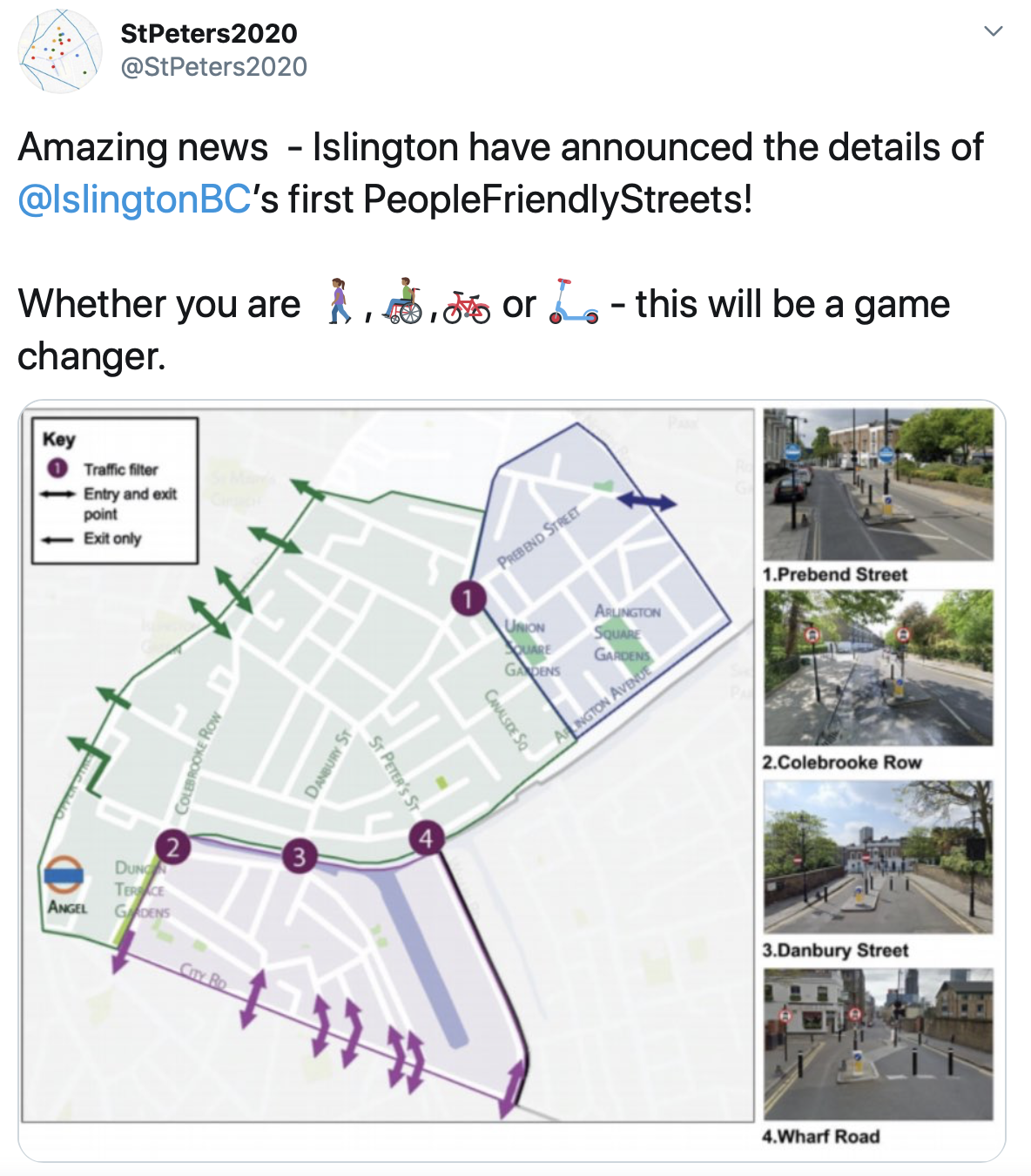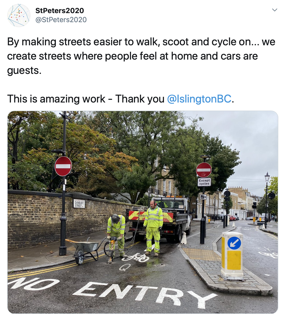 Twitter tells me that work seems to have been completed on the St Peter's People Friendly Streets road furniture. Well done to Islington Council! Barnsbury & St Mary's neighbours are looking forward to our turn!