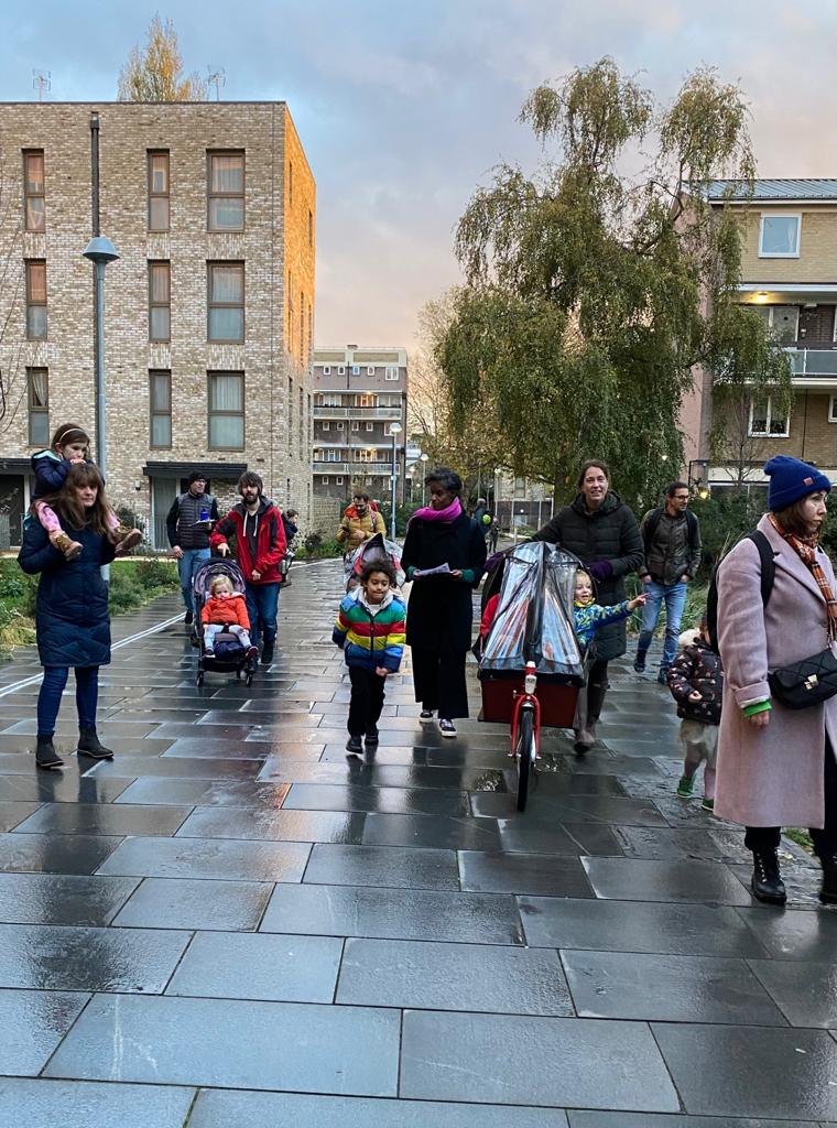 Next stop was Mildmay. There was an marked contrast as we travelled from the Canonbury Liveable Neighbourhood with it’s people-friendly streets and into Mildmay, which felt heavily dominated by traffic. It suddenly became noisy; the air was dirty; the chatter and laughter died down as parents and children focused on the potential risks from road danger.