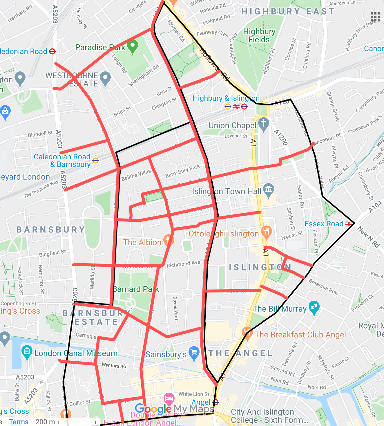 Barnsbury Street - Liverpool Road - Offord Road - Roman Way