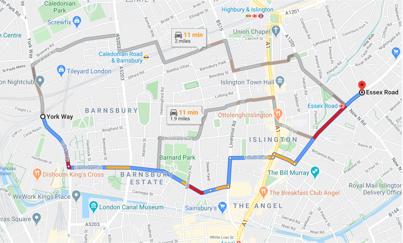 West-East journeys from York Way to Essex Road